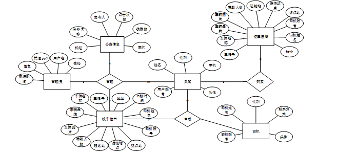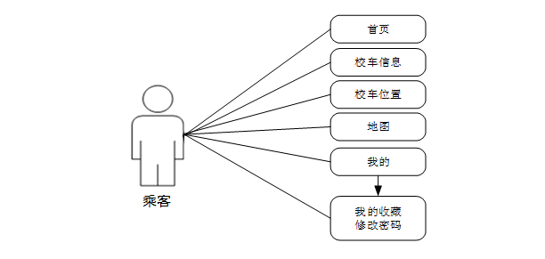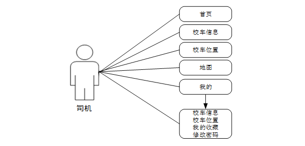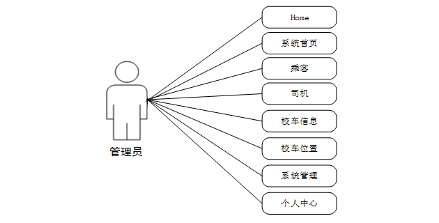 管理员模块:管理员在系统中的是核心用户,管理员登录后,可以对服务端进行管理。主要功能有:乘客、司机、校车信息、校车位置等功能。管理员用例如图3-1所示。