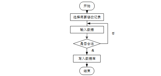 管理员可以修改信息,用户可以修改自己权限内的信息,首先进入修改信息界面,输入需要修改信息,在系统进行判定为正确和合规后修改成功,并将数据更新至数据库。信息不合法则修改失败,重新输入。修改信息流程图如图3-8所示。