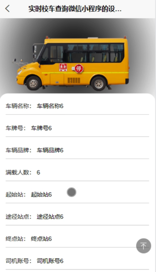 校车信息(车牌号、车辆名称、品牌、图片、满载人数、起始站、途径站点、终点站、司机账号、经纬度、详细地址)