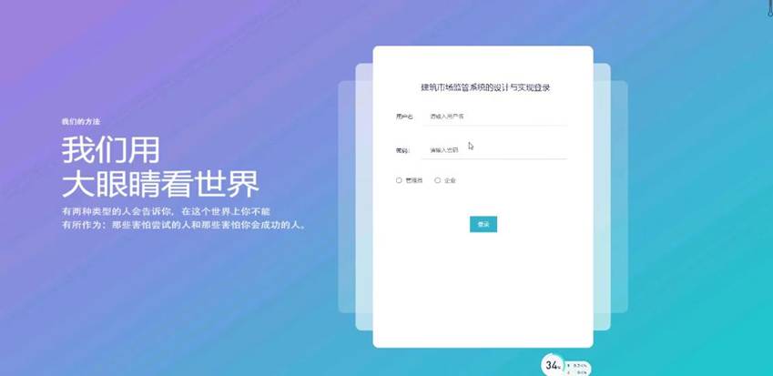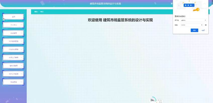 建筑市场监管系统根据不同的权限可划分为不同的角色,分别是管理员和企业。该系统已存在的用户,在登录系统时需要填写相应的账户信息,登录时应注意输入的账户密码,角色也要在登录时进行选择,登陆成功后会根据不同角色进入相对应的页面。