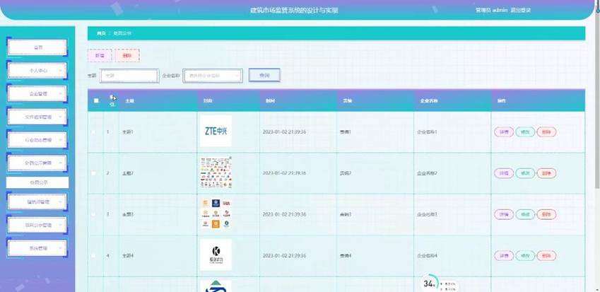 随着建筑行业信息化推进,传统建筑项目管理依赖人工记录项目信息、分散存储监管文件,存在企业信息管理混乱、项目进度跟踪难、处罚公示不透明等问题,难以满足管理员监管与企业项目管理的需求。在此背景下,开发一套覆盖 “企业监管 - 项目公示 - 行业动态” 的建筑项目管理系统,成为整合建筑市场资源、提升监管效率的关键。