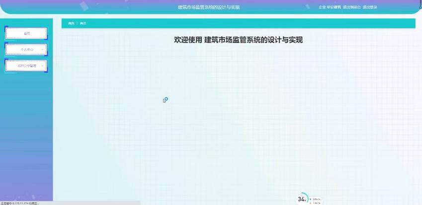 企业进入系统可以对首页,个人中心,项目公示管理等功能进行操作。企业主页面如图5-11所示: