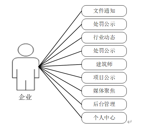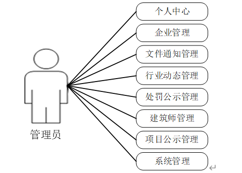 (1)、管理员关键功能包含个人中心,企业管理,文件通知管理行业动态管理,处罚公示管理,建筑师管理,项目公示管理,系统管理等进行管理。管理员用例如下: