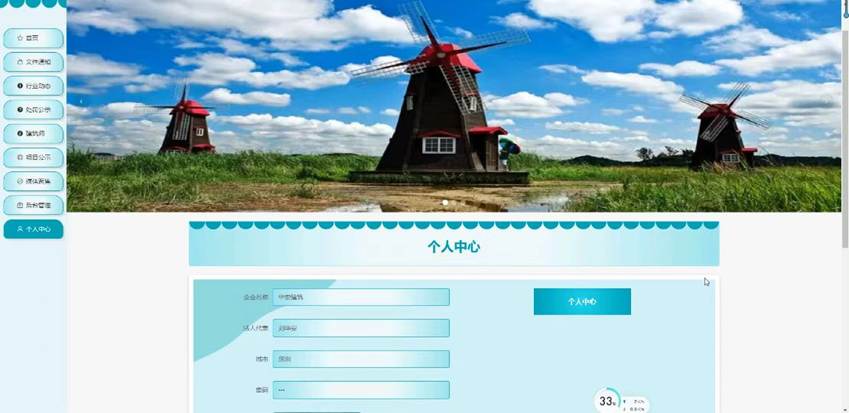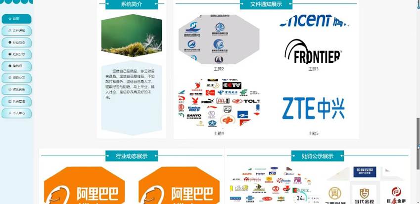 企业功能模块由文件通知,处罚公示,行业动态,处罚公示,建筑师,项目公示,媒体聚焦,后台管理等功能组成。能对自己的个人信息和密码进行修改,修改前需要先成功登录本系统。