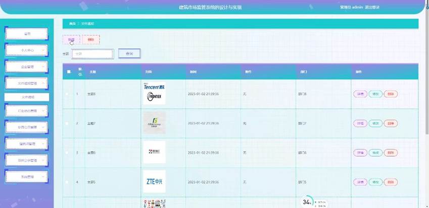 - 行业与文件模块:行业动态(管理员发布建筑行业政策、市场趋势,标注来源与责编;企业查阅动态,及时调整经营策略);文件通知(管理员下发政策文件、会议通知,添加附件与发布部门;企业下载文件,按要求执行相关工作);