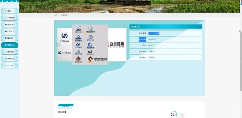 项目公示:在项目公示页面的输入栏中输入项目名称,企业名称和选择项目进度进行查询,可以查看到项目公示详细信息;项目公示页面如图5-3所示: