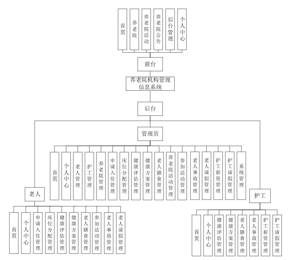 养老机构管理信息系统主要有管理员、护工和老人三个功能模块。以下将对这三个功能的作用进行详细的剖析。