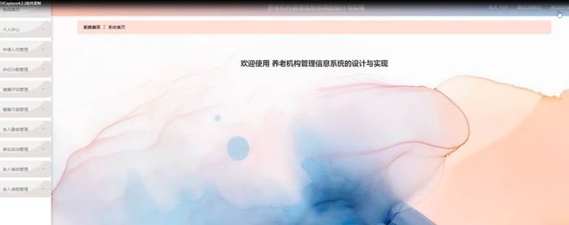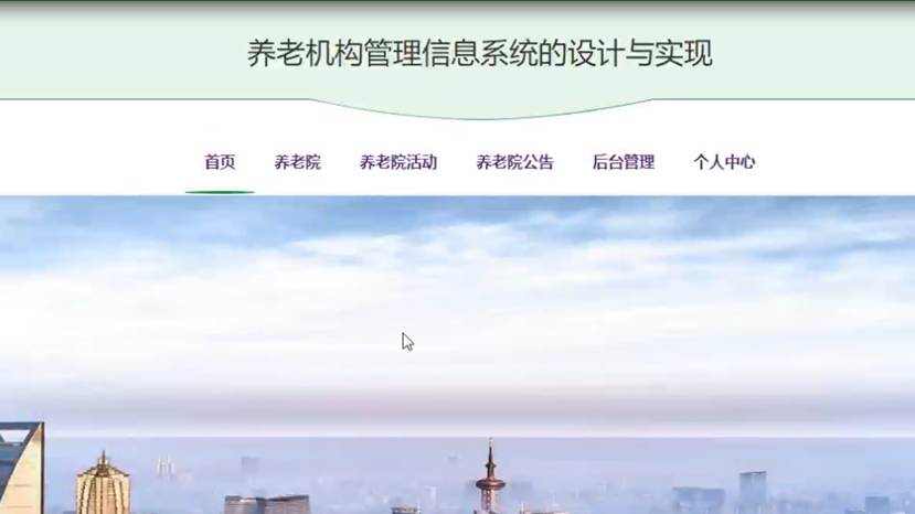 当用户打开系统的网址后,首先看到的就是首页界面。在这里,人们能够看到养老机构管理信息系统的导航条等。系统首页界面如图5-1所示: