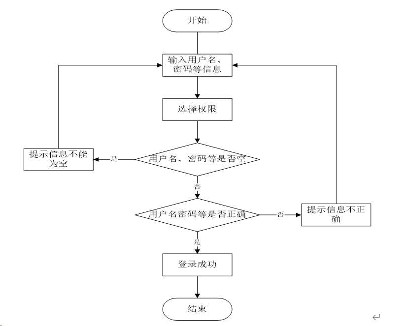 登录流程实现了管理员和其他用户的登录,在登录页面需要用户填写自己的信息,前端页面会将信息传递给后端接口,然后查询数据库确定该身份有效后登录成功,否则此用户登录失败,需要重新填写信息,进行再次验证,如图3-1所示。