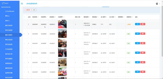 活动中心:活动信息、活动类型、活动报名、活动签到、收藏与评论。