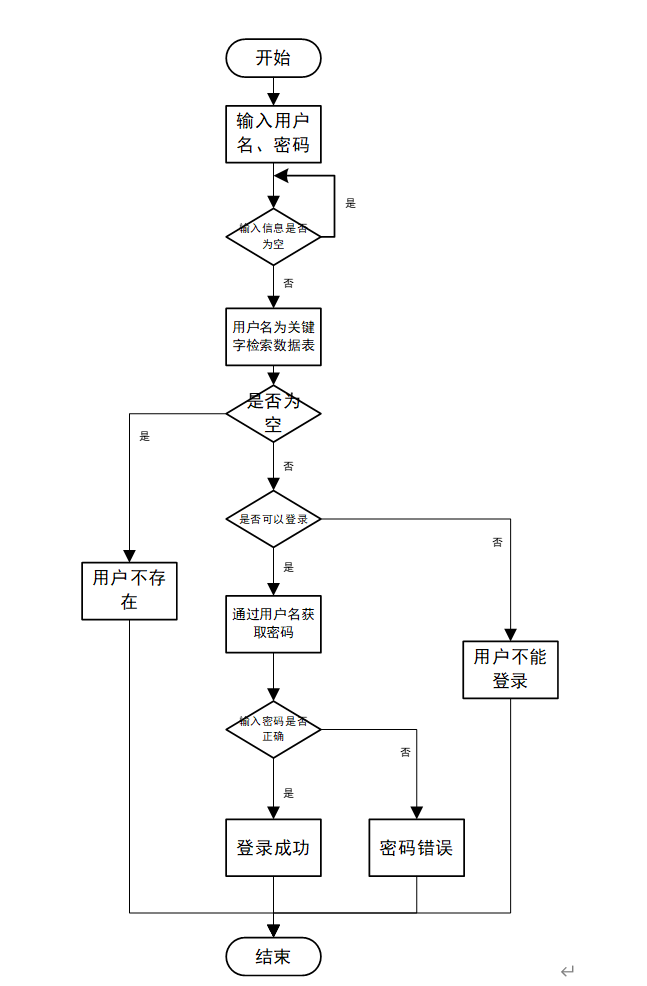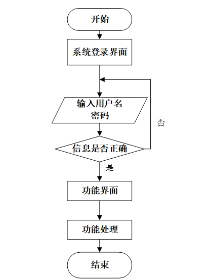 用户登录系统时需要输入正确的用户名和密码,数据库在进行匹配核实后匹配结果正确才能进入系统,若错误则提示用户名或密码错误,即无法登录。操作流程如图3-5所示。