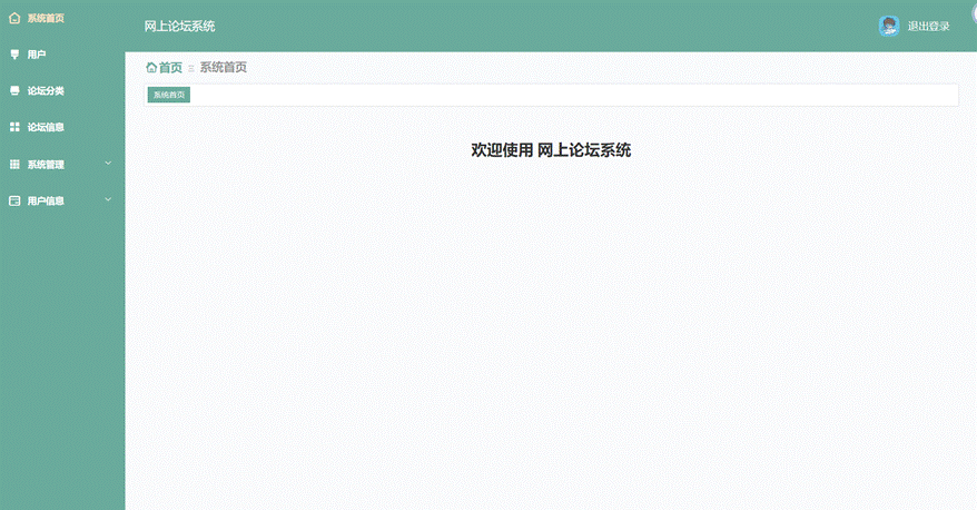 管理员进入主页面,主要功能包括对系统用户、论坛分类、论坛信息、系统管理、用户信息等进行操作。管理员主页面如图5-6所示: