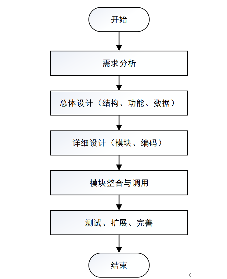 系统开发时,首先对此系统进行需求分析,进而对系统进行模块、编码等详细设计总体的设计规划,设计系统功能模块,数据库的选择等,本系统的开发流程如图3-3所示