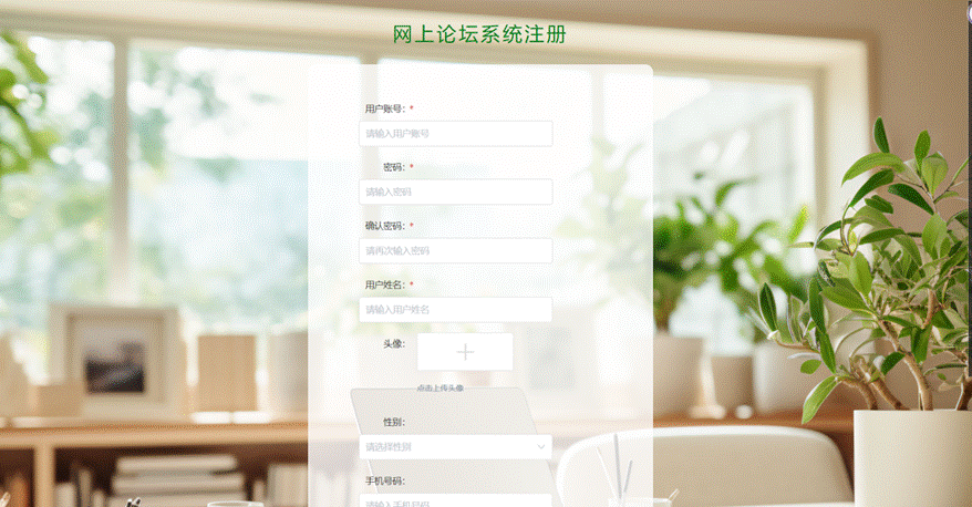 在注册流程中,用户在Vue前端填写必要信息(如用户名、密码等)并提交。前端将这些信息通过HTTP请求发送到Java后端。后端处理这些信息,检查用户名是否唯一,并将新用户数据存入MySQL数据库。完成后,后端向前端发送注册成功的确认,前端随后通知用户完成注册。这个过程实现了新用户的数据收集、验证和存储。注册页面如图5-2所示: