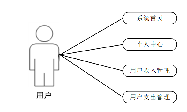 (4) 用户可以对系统首页,个人中心,用户收入管理,用户支出管理进行操作,用例分析如图3-4所示。