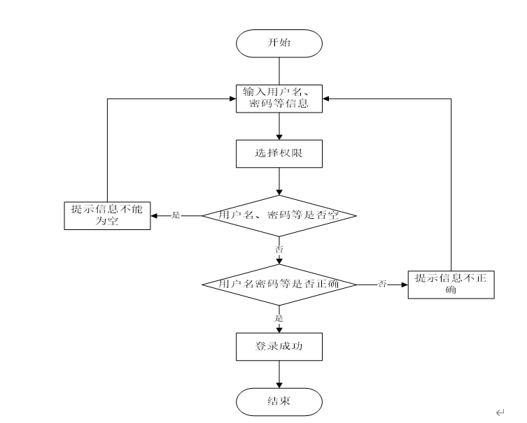 登录流程实现了管理员和其他用户的登录,在登录页面需要用户填写自己的信息,前端页面会将信息传递给后端接口,然后查询数据库确定该身份有效后登录成功,否则此用户登录失败,需要重新填写信息,进行再次验证,如图3-2所示。