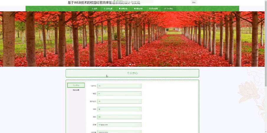- 系统管理:发布新闻公告(标题、简介、图片、内容),维护轮播图(首页推荐热门红歌)与关于我们(平台介绍),确保红歌资源与系统信息及时更新;