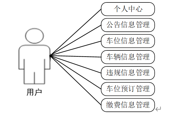用户模块的主要设计是:在登陆成功后,本系统实现对个人中心、公告信息管理、车位信息管理、车辆信息管理、违规信息管理、车位预订管理、缴费信息管理等功能进行详细操作;