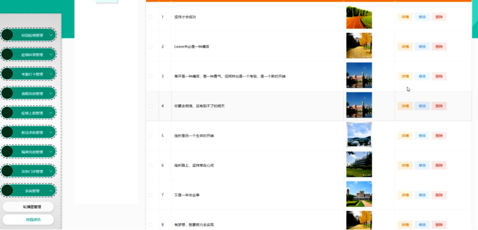 疫情科普管理:发布和管理疫情防控相关的科普文章,帮助师生更好地了解疫情知识,增强自我防护意识。