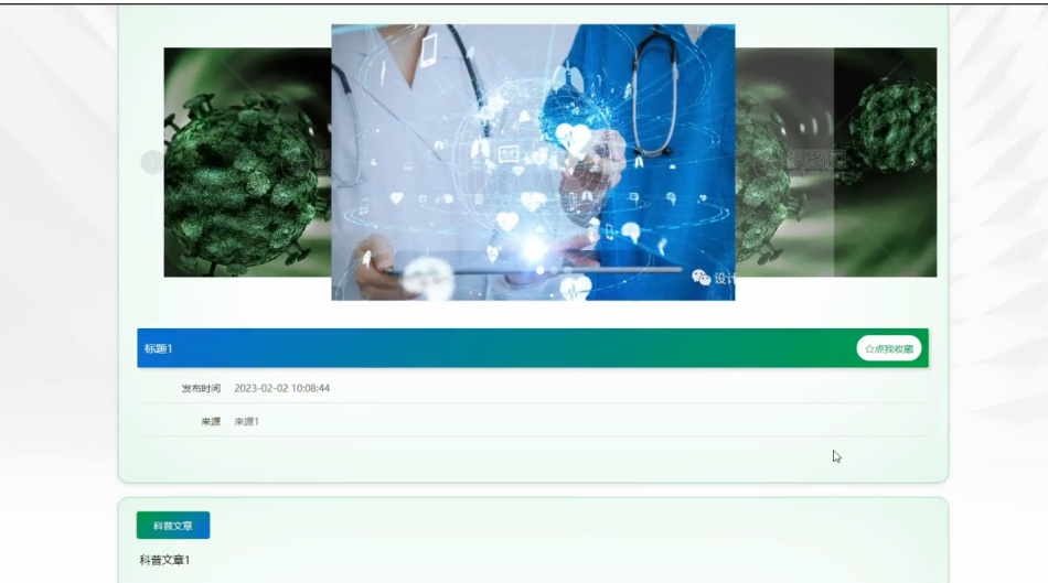 点击疫情科普,进入到疫情科普详情页面,可以查看疫情科普详情,并进行在线收藏的操作,疫情科普详情页面如图5-15所示。