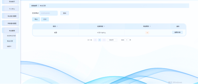 点击考试记录,用户可以查看试卷名称、姓名、考试得分等考试记录信息,如图5-7所示。