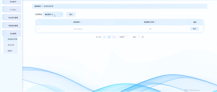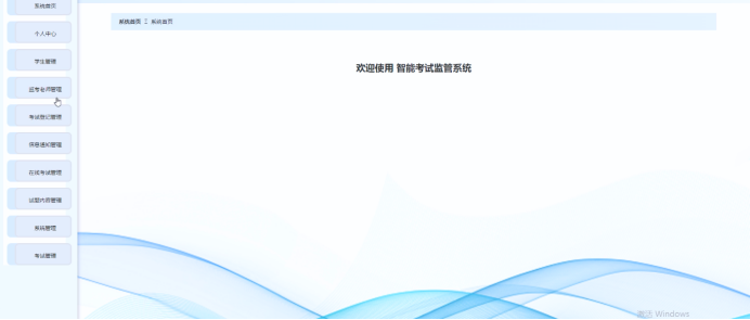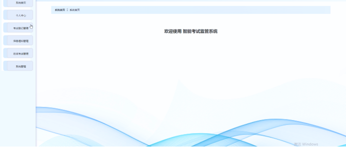 监考老师使用账号登陆进系统后台页面后,可以对个人中心、考试登记管理、信息通知管理、在线考试管理、系统管理等操作。监考老师功能界面显示如图5-8所示。