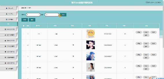 管理员是所有模块中权限最高的,管理员功能由系统首页、个人中心、用户管理、充值信息管理,图书分类管理,图书信息管理,借阅记录管理,归还记录管理,提醒信息管理,扣费记录管理,系统管理等功能组成。管理员可以对用户信息进行操作、可以随意的添加用户信息、可以及时的更新用户信息、也可以直接新增用户和删除用户。