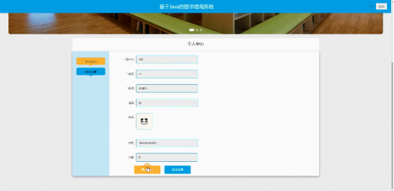 个人中心:用户可以更新个人信息,查看借阅记录、归还记录、提醒信息和扣费记录。