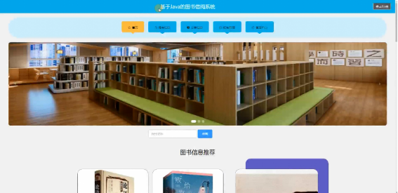系统首页:展示图书借阅系统的导航条和图书信息等。