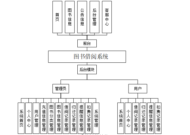 用户功能由系统首页、个人中心、借阅记录管理、归还记录管理、提醒信息管理、扣费记录管理等功能组成。能对自己的个人信息和密码进行修改,修改前需要先成功登录本系统,还可以对图书信息进行查询、收藏或评论操作;对图书借阅进行查询等操作。
