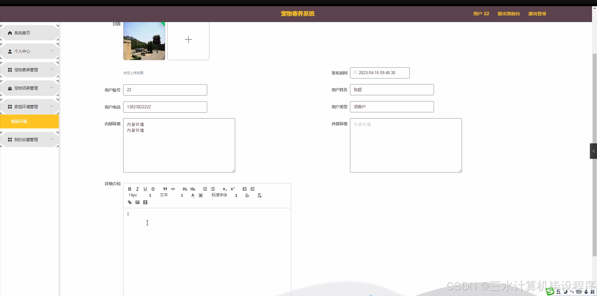 随着现代生活节奏的加快,宠物已成为许多家庭的重要成员,但随之而来的宠物寄养问题也日益凸显。当主人因工作、旅行等原因无法照顾宠物时,寻找一个安全、舒适、专业的寄养环境成为他们的首要需求。然而,传统的宠物寄养方式往往存在信息不透明、服务质量参差不齐等问题,给宠物主人带来了诸多不便和担忧。因此,开发一个宠物寄养系统,通过信息化手段实现寄养服务的规范化、透明化和便捷化,已成为当前宠物市场亟待解决的问题。