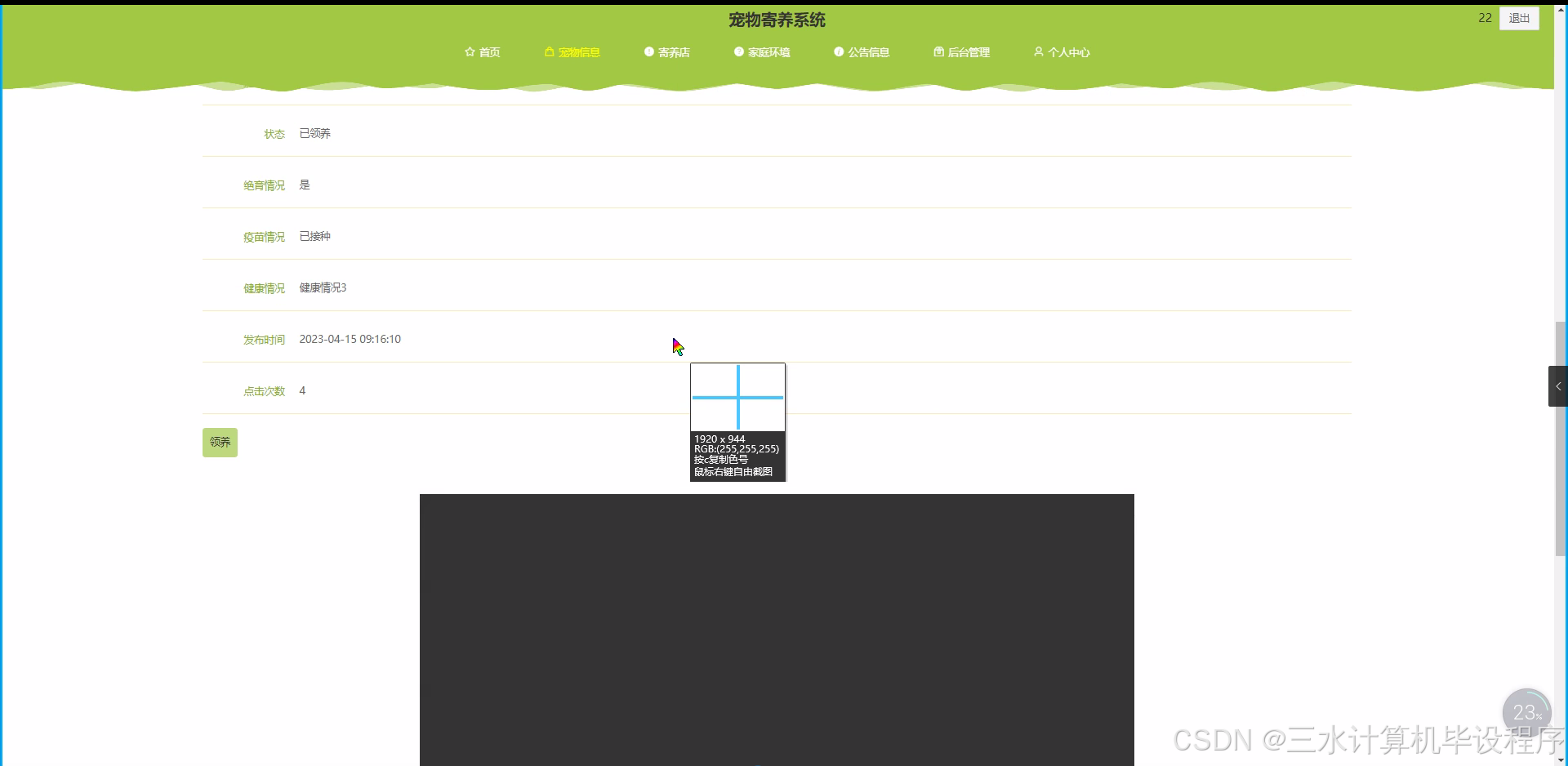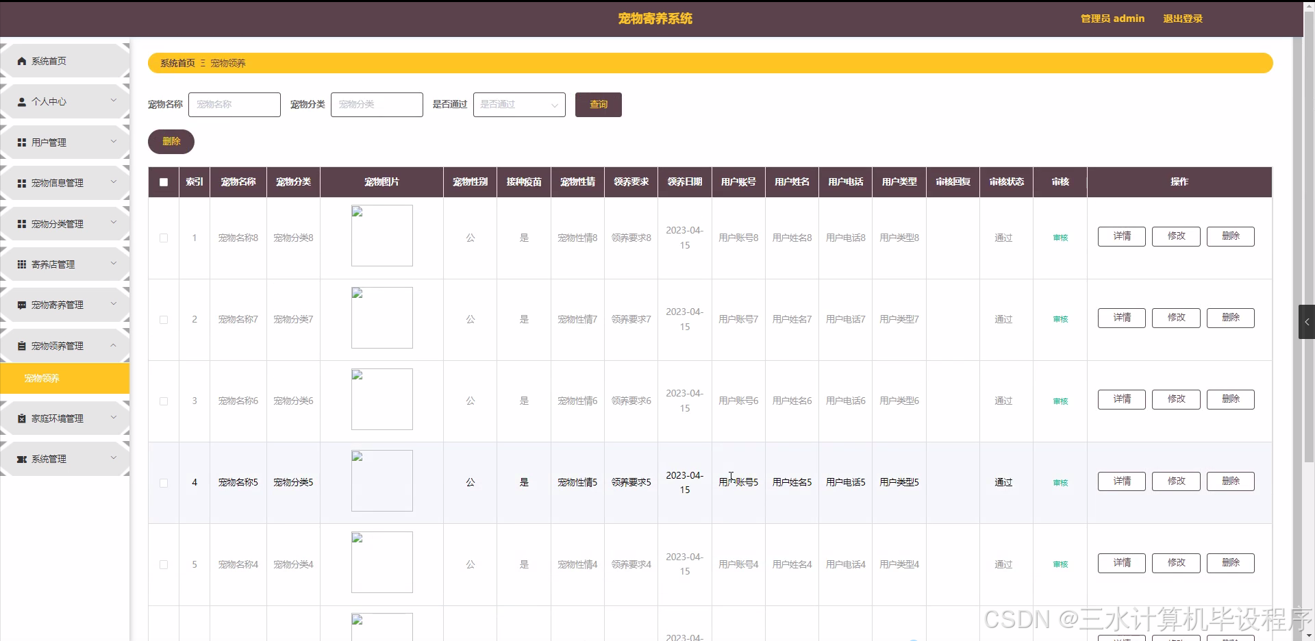 本研究旨在设计并实现一个功能完善的宠物寄养系统,以满足宠物主人对寄养服务的需求。该系统将整合用户管理、宠物信息管理、宠物分类、寄养店管理、宠物寄养管理、宠物领养管理、家庭环境评估以及用户宠物互动等功能模块,为用户提供一站式、便捷化的宠物寄养解决方案。