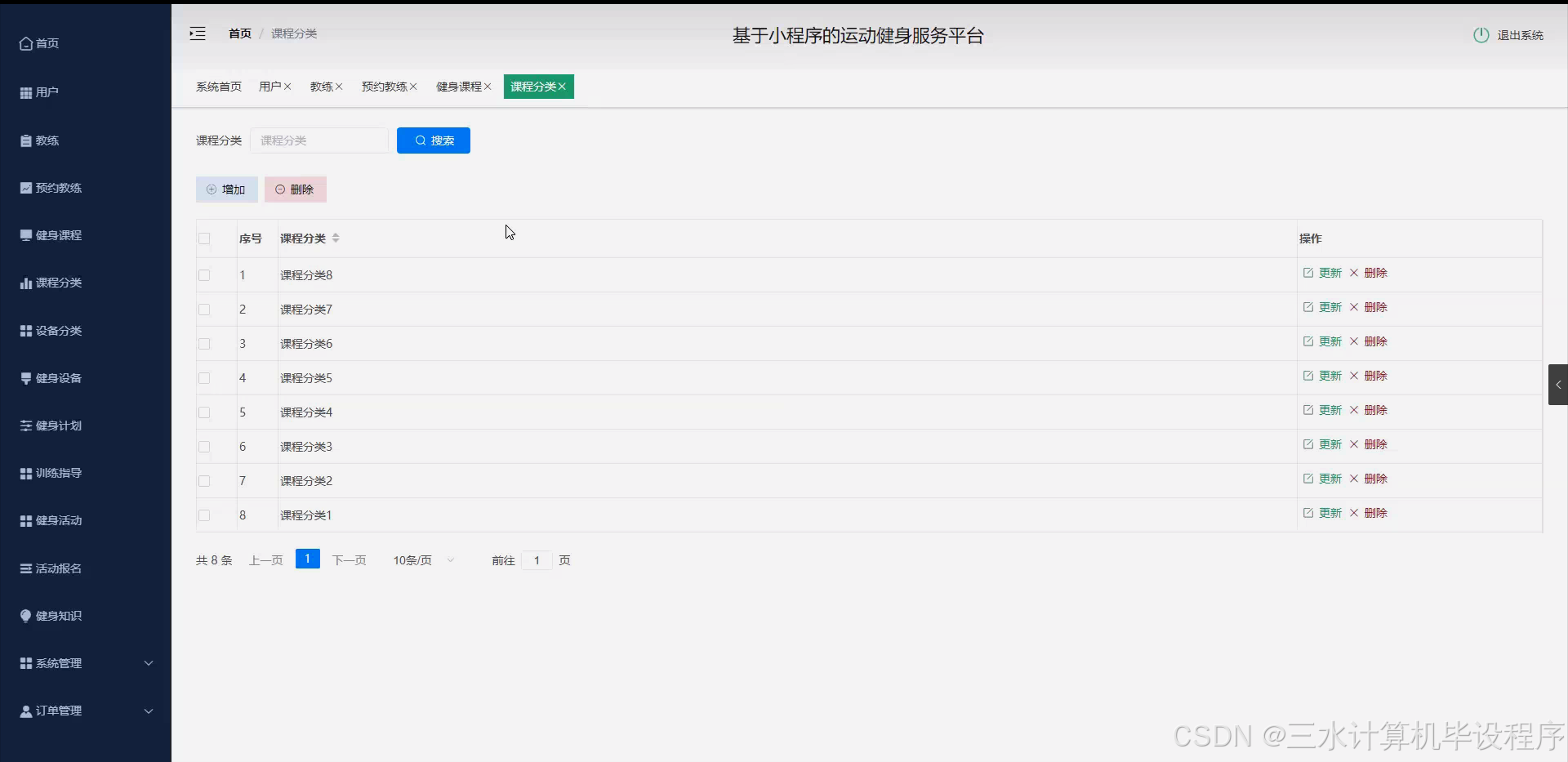 在健身课程管理方面,系统需要涵盖多种类型的健身课程,如瑜伽、普拉提、力量训练等,并对课程进行分类管理。用户可以根据自己的健身需求和兴趣选择合适的课程。