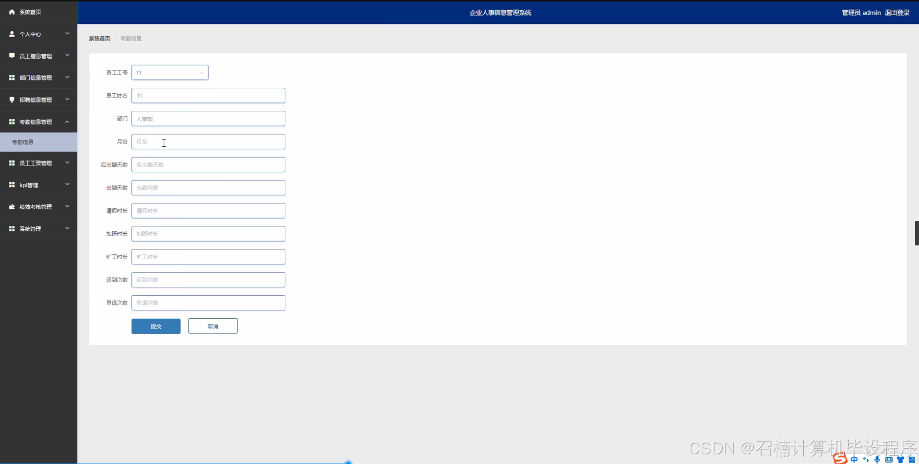 本研究旨在设计并实现一套功能完善、操作简便的企业人事信息管理系统,以满足企业对人事信息管理的实际需求。通过该系统,企业能够实现员工信息、部门信息、招聘信息、考勤信息、员工工资以及KPI和绩效考核等信息的集中管理,提高管理效率,优化人力资源配置,降低管理成本。同时,系统还能够为企业提供数据分析和决策支持功能,帮助企业更好地掌握人力资源状况,制定更加科学、合理的人力资源管理策略。