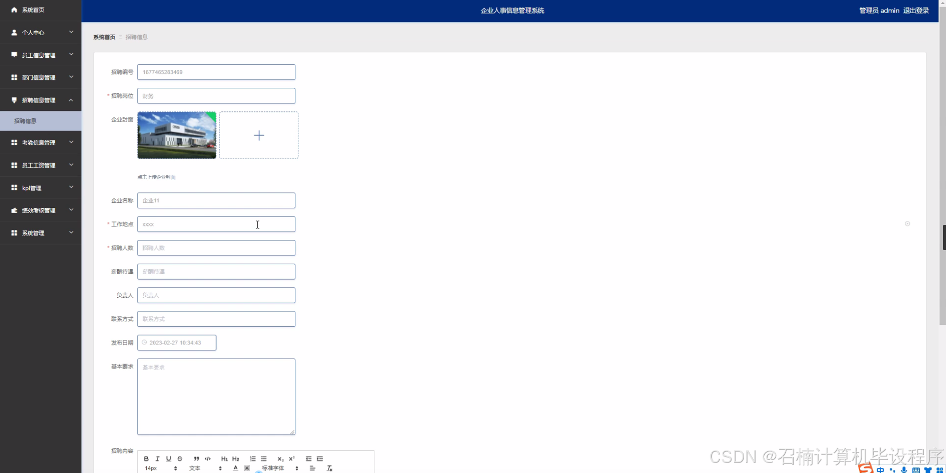 招聘信息管理:系统应支持招聘信息的发布、查询和统计功能,帮助企业实现招聘流程的自动化管理,提高招聘效率和质量。