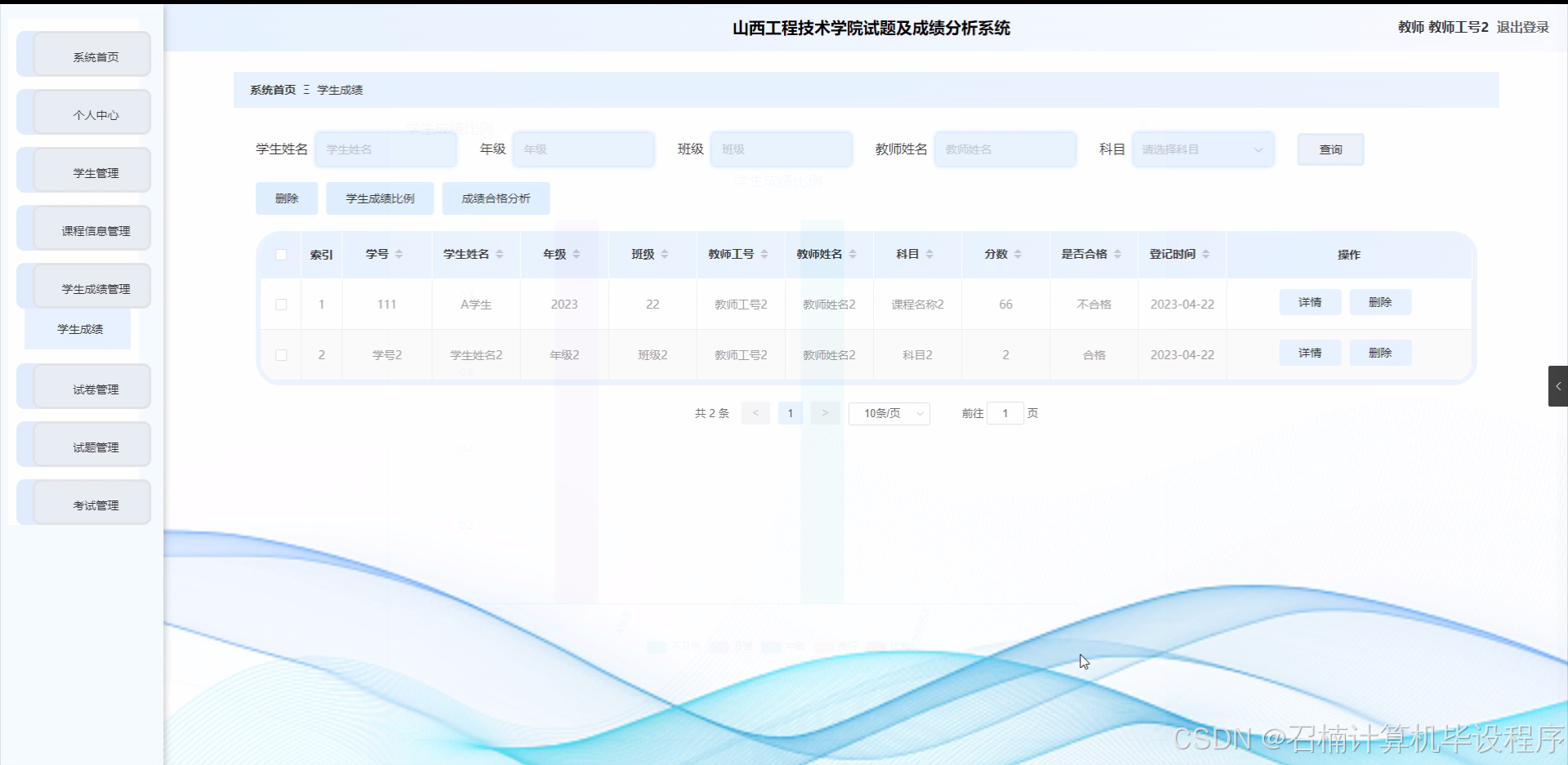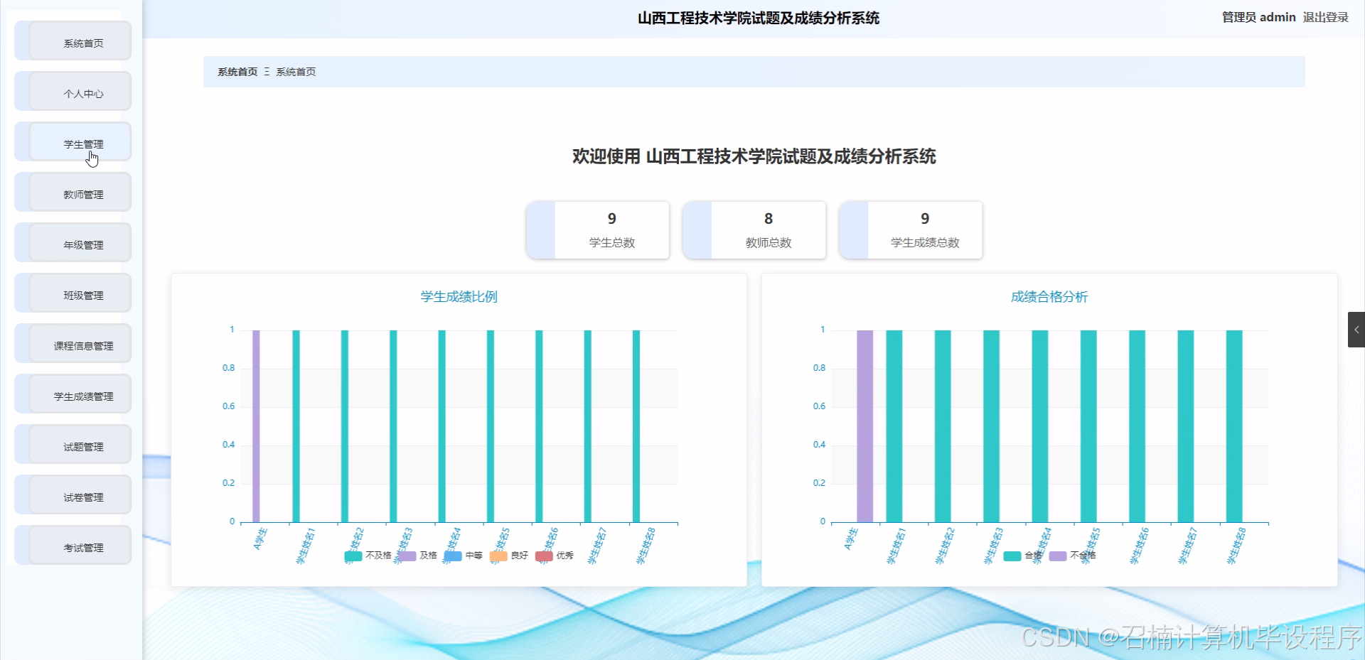 在现实方面,该选题的研究有助于提高山西工程技术学院的教学管理效率。例如,通过系统对学生、教师、年级、班级、课程信息、学生成绩、学生信息等进行有效的整合与分析,教师可以更精准地掌握教学效果,从而调整教学策略;学校管理部门能够依据成绩分析结果优化教学资源分配等。同时,也有助于提高学生对自身学习情况的认知,促进教学相长。