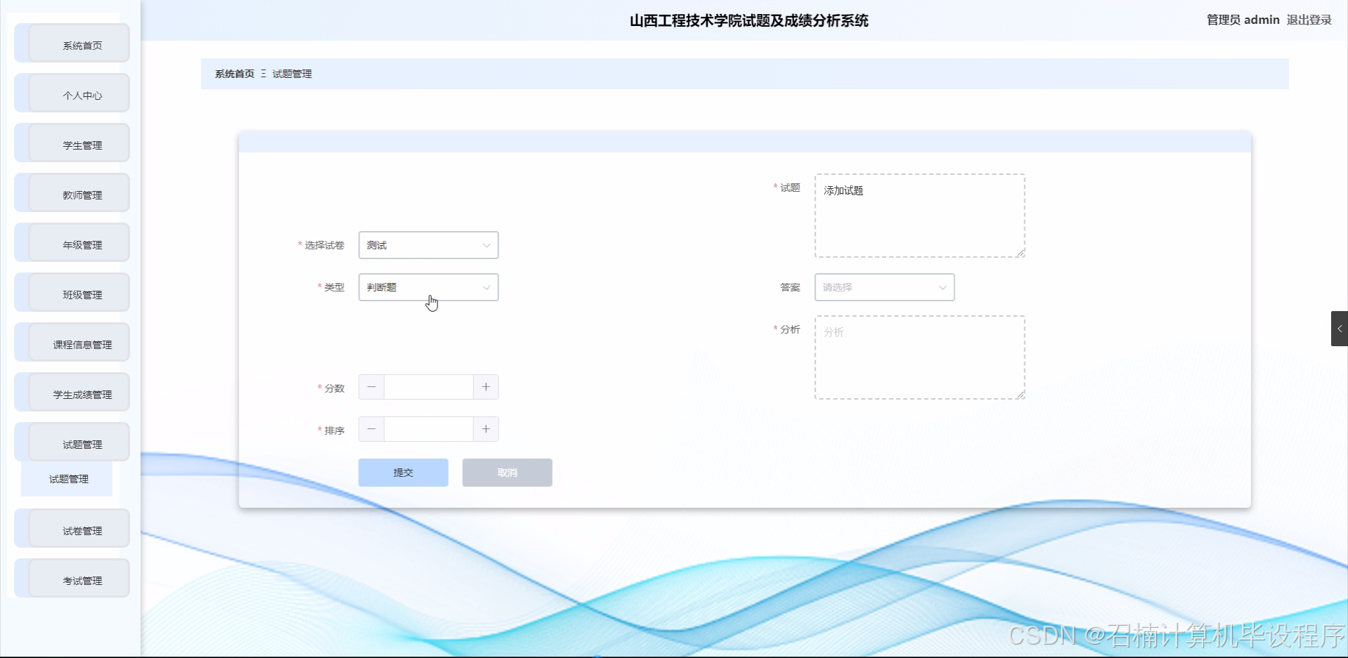 关于高校试题及成绩分析系统的研究,现有研究主要以综合性大学或重点院校为主,专门针对山西工程技术学院这样的特定院校的研究较少。在国内外,高校管理系统相关研究成果众多,但针对特定院校的试题及成绩分析系统,不同观点主要集中在系统功能的侧重点以及数据挖掘的深度上。目前存在的争论焦点在于如何在满足院校特殊需求的同时,确保系统的通用性和扩展性。本选题将以山西工程技术学院为研究情景,重点分析和研究符合该校需求的试题及成绩分析系统的构建问题,以期探寻适合该校教学管理特点的系统构建方式、数据处理模式等,提出合理的系统设计对策建议,为后续更加深入的研究提供基础。这一研究有助于深入了解山西工程技术学院的教学管理需求,完善教学管理体系,具有一定的研究价值。