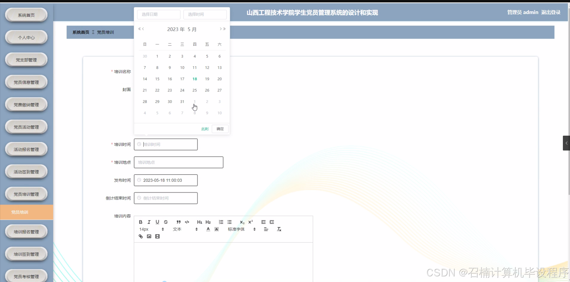 在现实中,随着山西工程技术学院学生党员数量的增加,传统的党员管理方式面临诸多挑战。该选题的研究有助于提高学院学生党员管理的效率,例如党费缴纳的便捷化、党员活动管理的有序化、党员信息管理的精准化等。同时,也有助于提升党员参与活动、培训的积极性,通过活动报名、签到等功能的优化,能更好地组织党员开展各类活动,增强党员的凝聚力和党性修养。