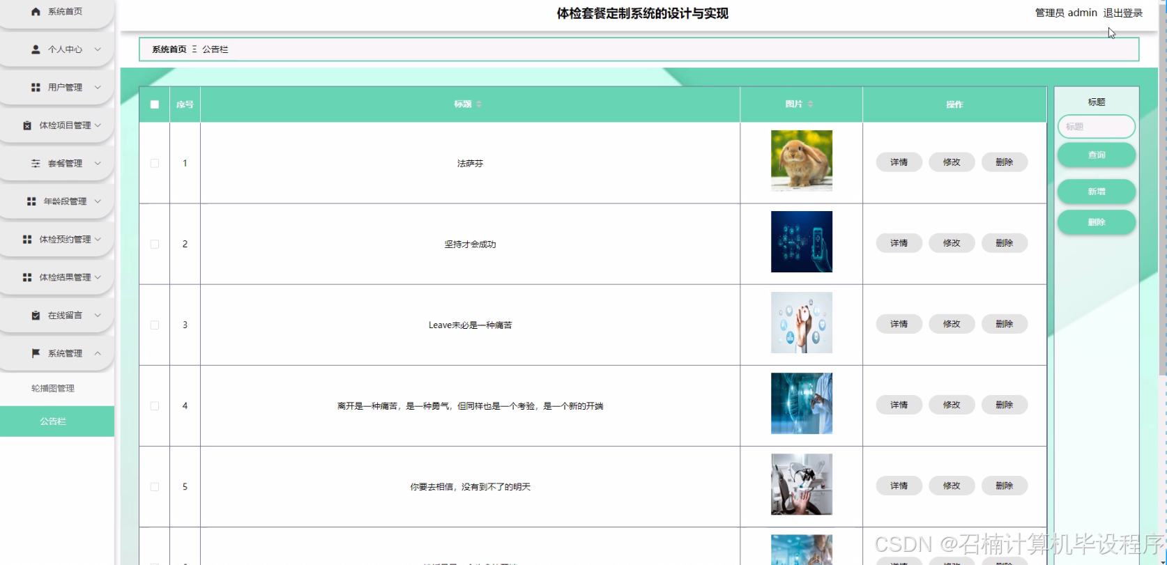 随着人们健康意识的不断提升,体检已成为现代人健康管理的重要手段。然而,传统的体检服务往往采用标准化的体检套餐,难以满足不同人群、不同年龄段、不同健康需求的个性化要求。此外,体检过程中的预约、排队、结果查询等环节也常给体检者带来不便。因此,设计并实现一个体检套餐定制系统,旨在提供个性化的体检服务,优化体检流程,提升体检效率和用户体验,具有重要的现实意义和市场需求。
