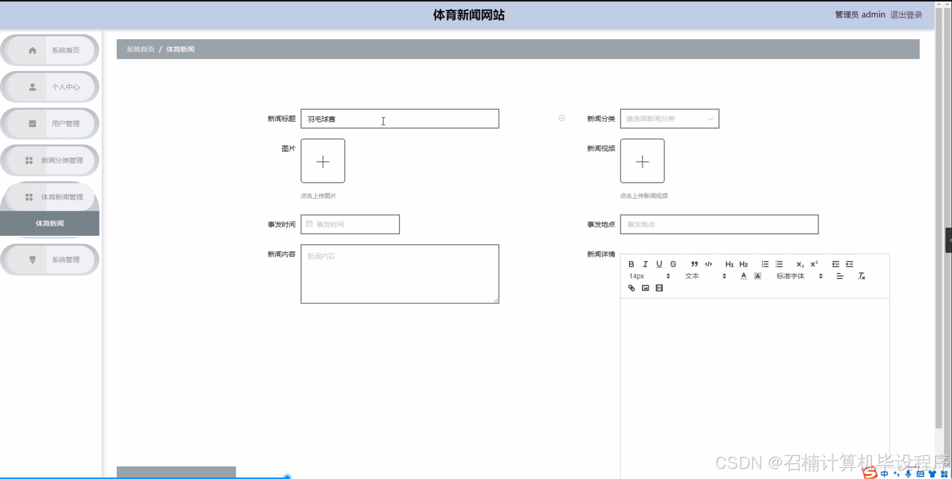 随着互联网技术的迅猛发展和人们对体育运动的热情不断高涨,体育新闻已成为广大网民关注的焦点之一。传统的体育新闻传播方式,如电视、广播和报纸,虽然拥有庞大的受众群体,但在信息更新速度、交互性和个性化服务方面存在局限性。因此,开发一个集新闻发布、分类浏览、用户互动等功能于一体的体育新闻网站,已成为满足现代人对体育信息需求的重要途径。通过这一平台,用户可以随时随地获取最新的体育资讯,参与话题讨论,分享个人见解,形成更加活跃的体育新闻社区。