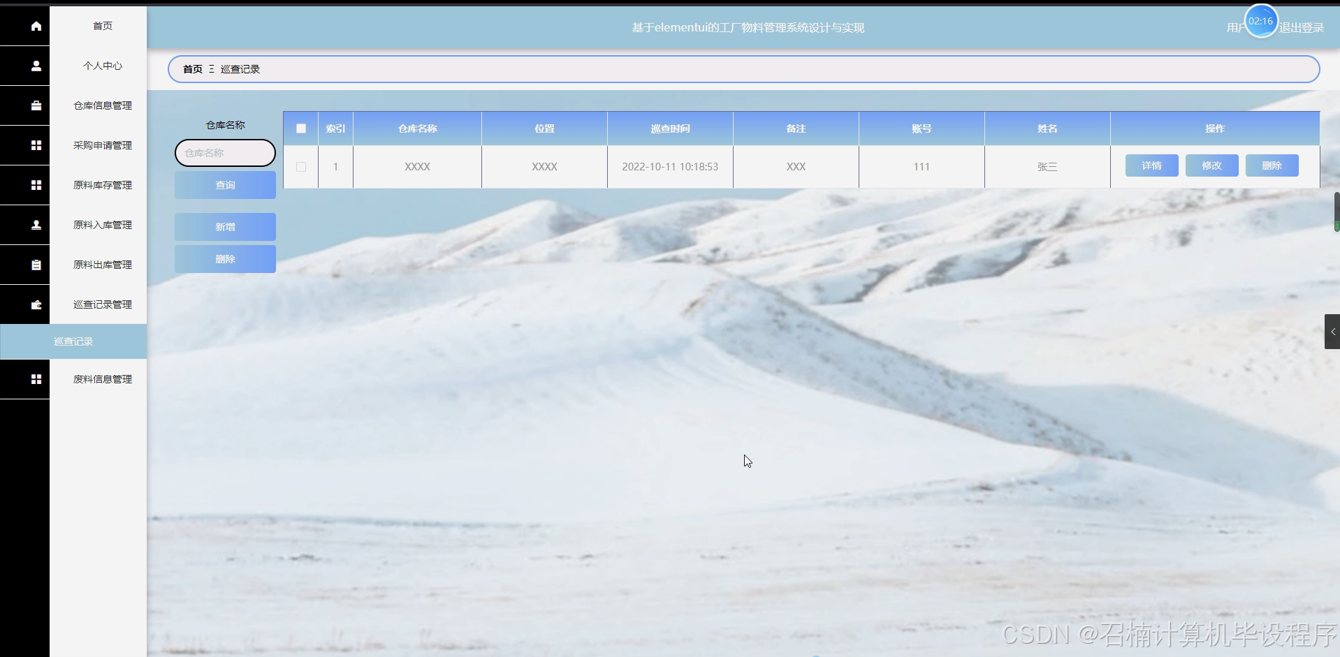 巡查记录管理模块:实现巡查记录的创建、查询和统计等功能。仓库管理员可以定期对仓库进行巡查,并记录巡查结果。系统将对巡查记录进行保存和管理,以便企业更好地了解仓库的运行情况和存在的问题。