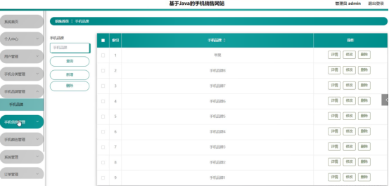 管理员点击手机品牌管理,在手机品牌管理页面的输入手机品牌等内容,进行查询、新增或者删除手机品牌等操作,如图5-11所示。
