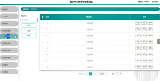 手机分类管理:管理员可以添加、编辑和删除手机分类。