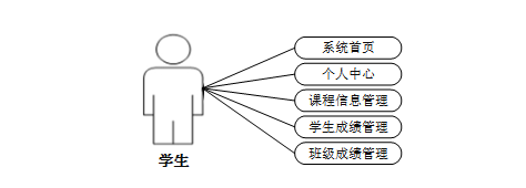 本文提出了一种基于面向对象的思想方法,以适应系统的实际功能与性能要求。为了使中学生成绩管理更具自动化和亲和力,在对中学生成绩管理系统进行简单的需求分析之后,将其分为三大功能模块,分别为管理员、学生和教师。其用例如下: