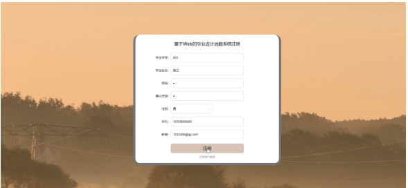 本课题要求实现一套基于Web的毕业设计选题系统,系统主要包括管理员和学生、教师功能模块。