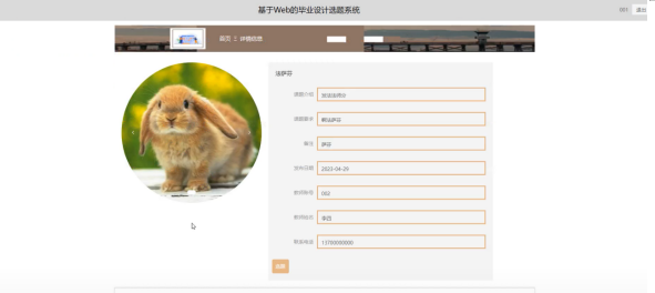 点击课题发布,学生在搜索栏输入课题名称、教师姓名,进行查询,还可以查看课题名称、图片、备注、发布日期、教师账号、教师姓名、联系电话等信息,如有需要可以进行选题操作,如图5-4所示。