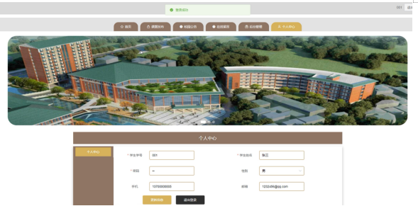学生点击个人中心,在个人中心页面可以更新个人详细信息;如图5-6所示: