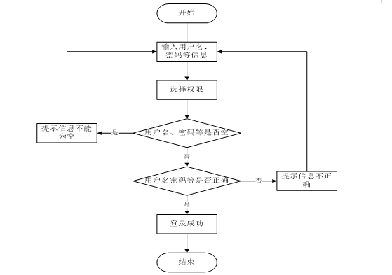 登录流程实现了管理员和其他用户的登录,在登录页面需要用户填写自己的信息,前端页面会将信息传递给后端接口,然后查询数据库确定该身份有效后登录成功,否则此用户登录失败,需要重新填写信息,进行再次验证,如图3-5所示。