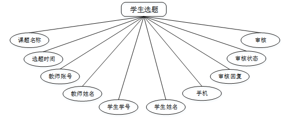 此次毕业设计选题系统通过springboot框架。springboot适合快速构建Web应用。springboot将分成了View模块和Template模块两部分,将动态的逻辑处理交给View处理,页面通过Template来实现。Model和Template由View连在一起,如此划分后,程序中的每一部分只做一件事情,耦合度大大降低,便于开发者管理。为了更好的去理清本系统整体思路,对该系统以结构图的形式表达出来,设计实现该毕业设计选题系统的功能结构图如下所示: