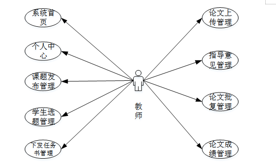 (4)教师通过后台系统来完成对学生的论文批复、论文成绩等,包括添加、修改或删除等操作。